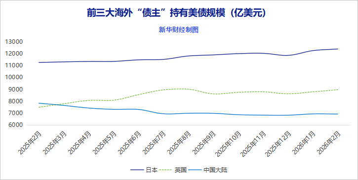 新华财经北京4月16日电 美国财政部公布2026年2月国际资本流动报告(TIC)显示,主要海外投资者2月持有美债规模环比增加1977亿美元,升至9.49万亿美元的历史高位。前二十位主要持有国家/地区中,仅有包括中国大陆在内的五家小幅下调了美债仓位。